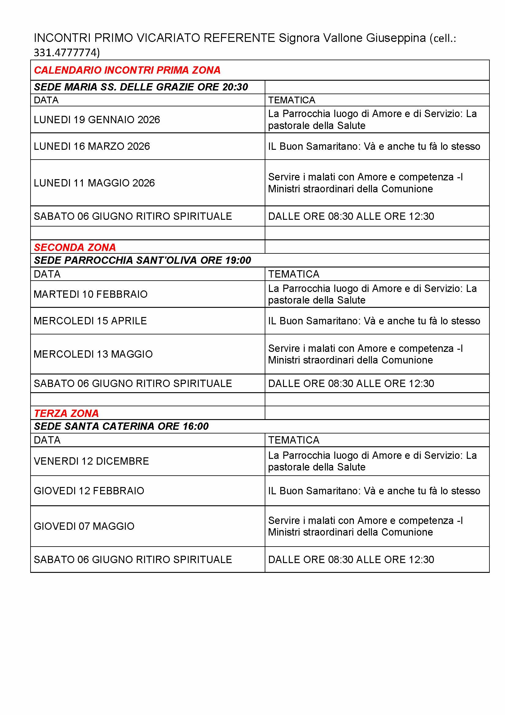 calendario incontri I Vicariato